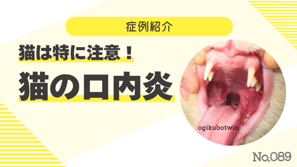診察時、多くのよだれがでていて、口の奥の口峡部が赤く腫れており猫の口内炎を疑う状況でした。